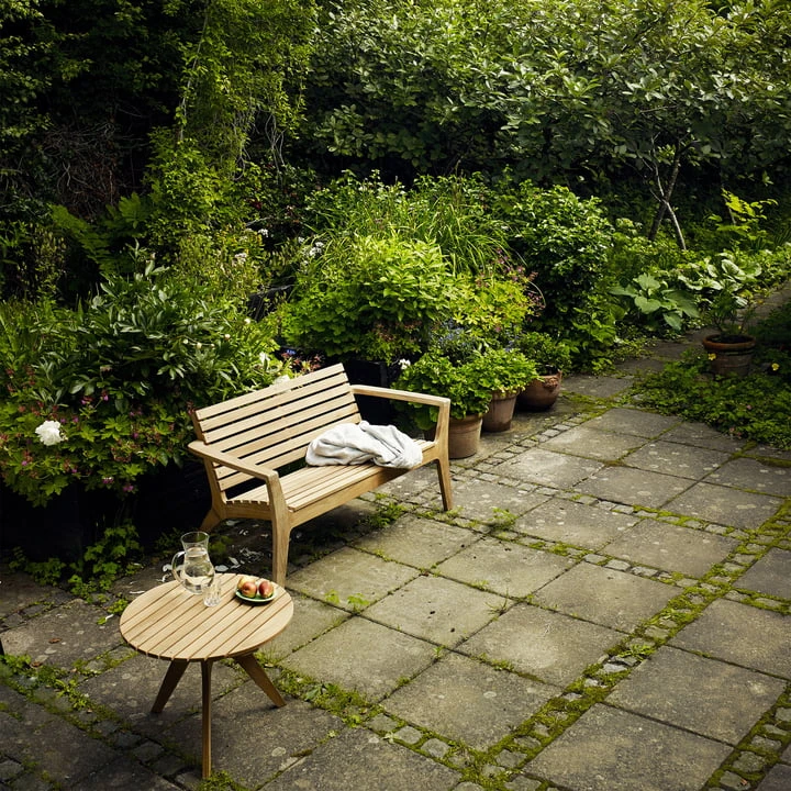The Regatta Lounge Table by Hans Thyge Raunkjær for Skagerak can be used perfectly for outdoor use and fits perfectly into the lounge corner in the garden. With its round table top and low height, it is wonderful as a side table to put snacks and drinks.