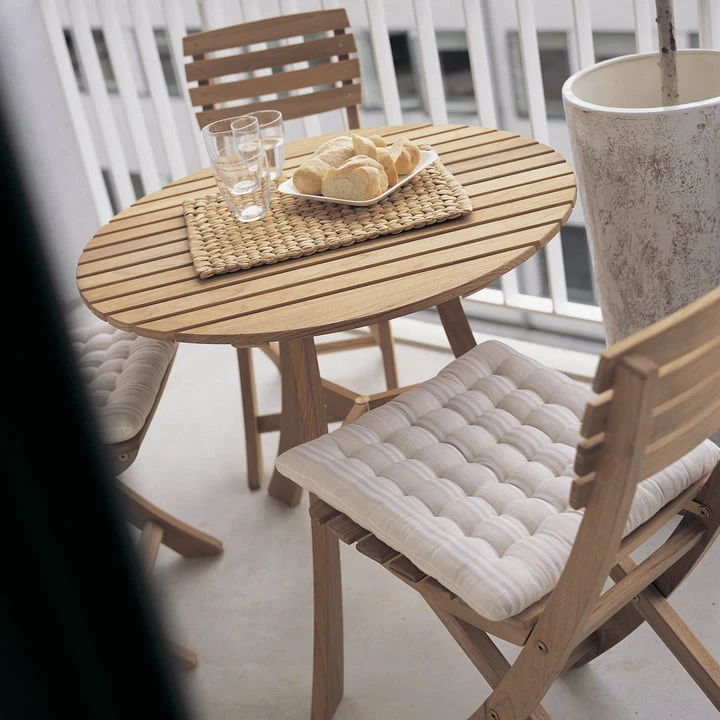 Designer Mogens Holmriis created with Vendia for Skagerak a robust and weatherproof furniture series made of untreated teak. Like all teak furniture, the furniture of the Vendia -series should be treated regularly or at least annually with appropriate care products. Especially when teak furniture is freely exposed to the weather, improper care can form a patina on the surface.