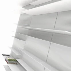 The reduced design of the Unu shelvingsystem is seamless integrated in modern homes. The 4mm slim, powder coated basic profile remains decently in the background, while the clear shape is an unmistakable statement for good style. The wall holders are not viewable when they are mounted, which complets the appearance of the Frost Unu.