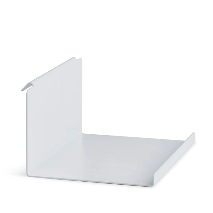 The Flex shelf is a matching addition to the shelf rail from the series of the same name from the Danish manufacturer Gejst. It is simply hung in the strip at the desired position and can therefore be used flexibly. Used as a bedside table, for example, the alarm clock can be placed on it, while a cookbook can be placed on it in the kitchen. Thanks to the front edge it can stand open on it and does not fall over.