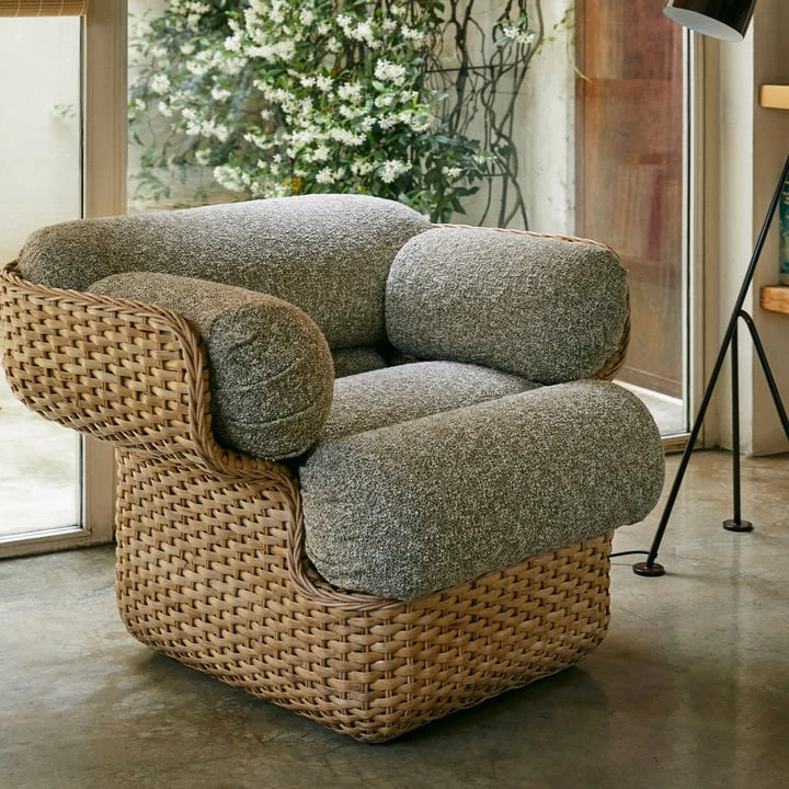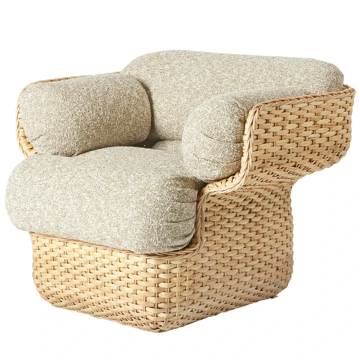 The Basket Lounge Armchair from Gubi is woven from rattan and presents a traditional hand weaving technique, which gives the living room a warm and cozy ambience. Due to the integrated steel skeleton, the armchair gets a unique shape and stability, which makes it particularly durable and suitable for everyday use. It envelops the body and creates, thanks to the armrests, exceptional comfort. The Basket Lounge Armchair is available in different finishes and can be integrated into many interior styles.