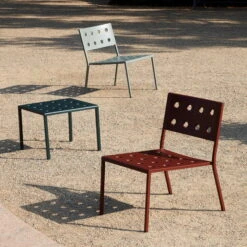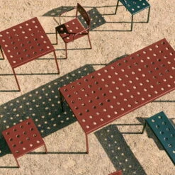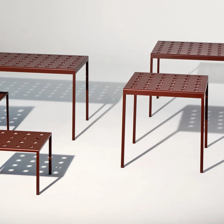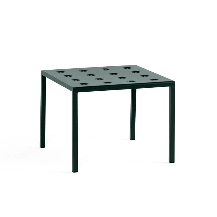 The Balcony side table by Ronan and Erwan Bouroullec for Hay is an elegant side table for outdoor use. The simple rectangular design is given a casual touch by its slender legs. The numerous holes on the surface of the table give stability to the structure, creating at the same time a special expression. Balcony Is made of powder-coated steel and has a coating that ensures optimal resistance and durability. This makes the side table ideal for outdoor use.