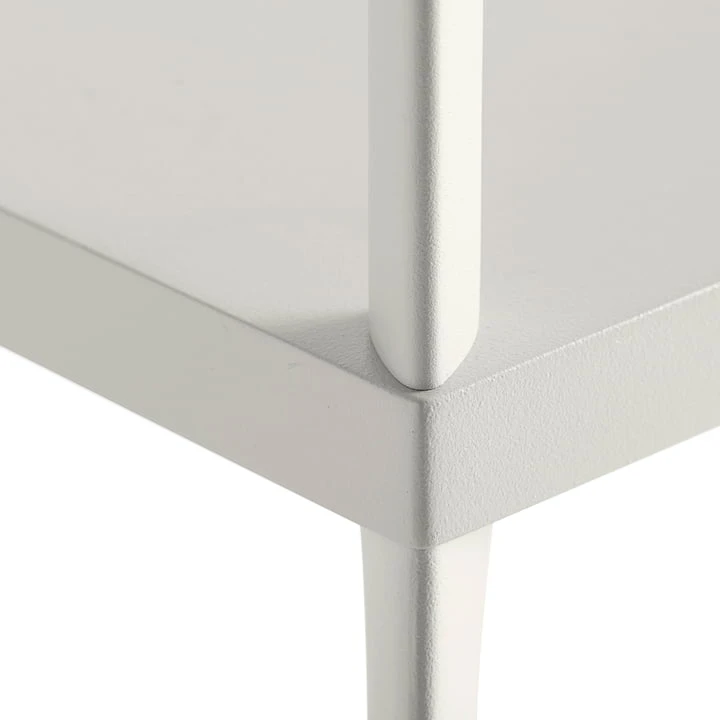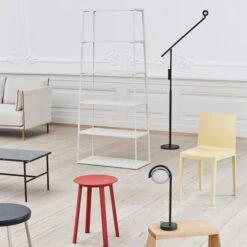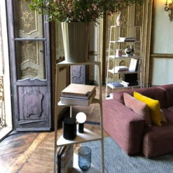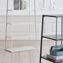 While the shelves are made from powder-coated MDF, the frame is made from light, powder-coated aluminium. The Eiffel shelving unit is available with shelves of various shapes and colours and with a different number of levels. As a result, the right model can be found for every taste and need.