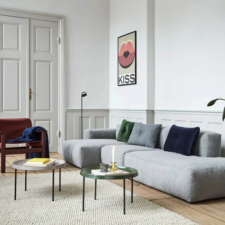 The Hay Mags 2-seater consists of two modules. However, with its corner and chaise longue modules, it is possible for anyone to design their very own sofa. Not only are the modules freely selectable, but you can also choose between different Kvadrat fabrics, a leather cover and decorative seams in different colours.