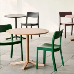 The Pastis Dining table by French designer Julien Renault for Hay inspires with its authenticity and high craftsmanship. Pastis Creates a supremely elegant aesthetic with its round tabletop and four curved legs. The versatile table is perfect for the dining room or public environments such as cafes. It adds warmth and versatility to the interior. The Pastis Dining table is available in various wood species and colors with a veneer table top.