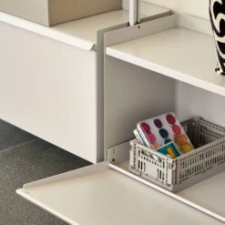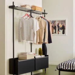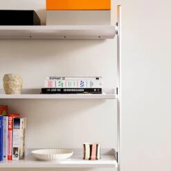 The Pier System by Ronan & Erwan Bouroullec for Hay is an extremely modern yet multifunctional storage option. Pier Offers a variety of different designs, sizes and simple colors. So all sorts of favorite decorations, office supplies, books or even converted clothes and shoes can be stored and presented. Shelves, cabinet elements and even baskets provide ample space. Whether as a classic shelf, modern wardrobe or space-saving desk – the Pier System of Hay can be used as needed and even combined with each other. It is made of powder-coated steel and sturdy aluminum.