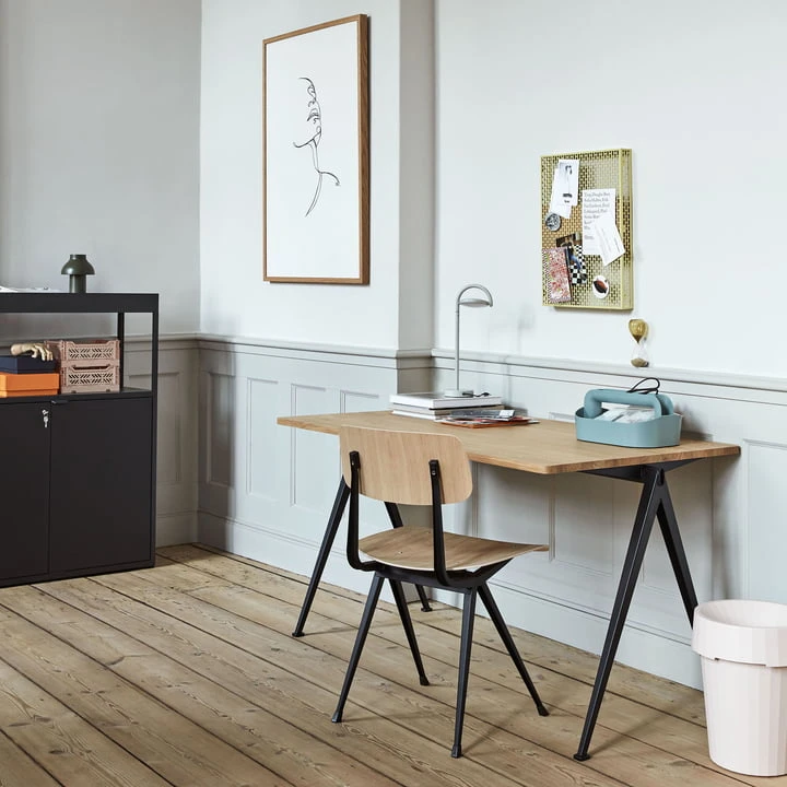 Designed in the sixties by Wim Rietveld, the Pyramid desk is making Hay a comeback. The industrial desk made of wood and steel inspires with a timeless and rustic charm.