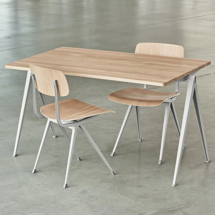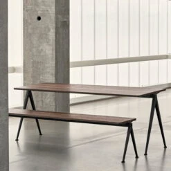 The Pyramid table comes in different variations. Together with the Pyramid collection, consisting of benches and tables, the matching Result chair has also been relaunched.