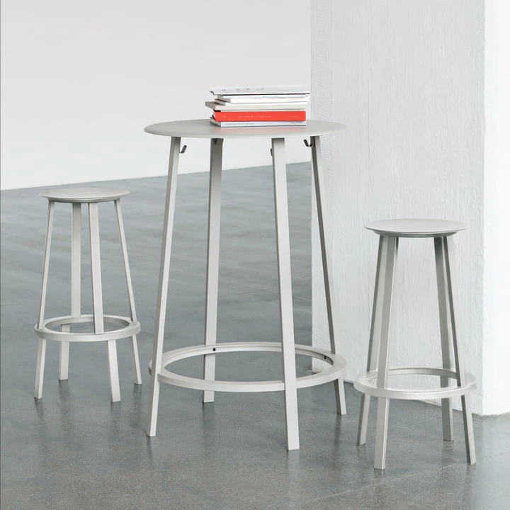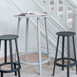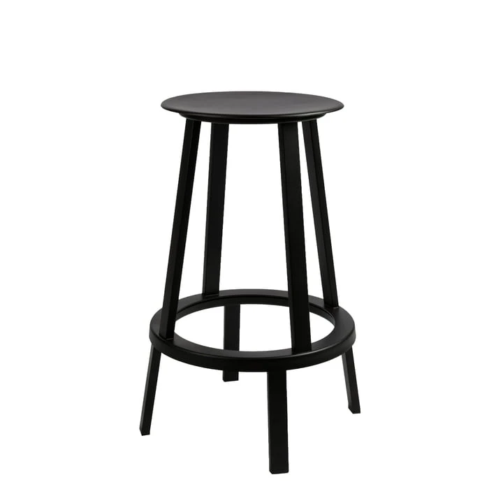 Hay produces the Revolver barstool of powder coated steel. The stool is available in two sizes and it is robust, longevity and easily cleaned because of its material.
