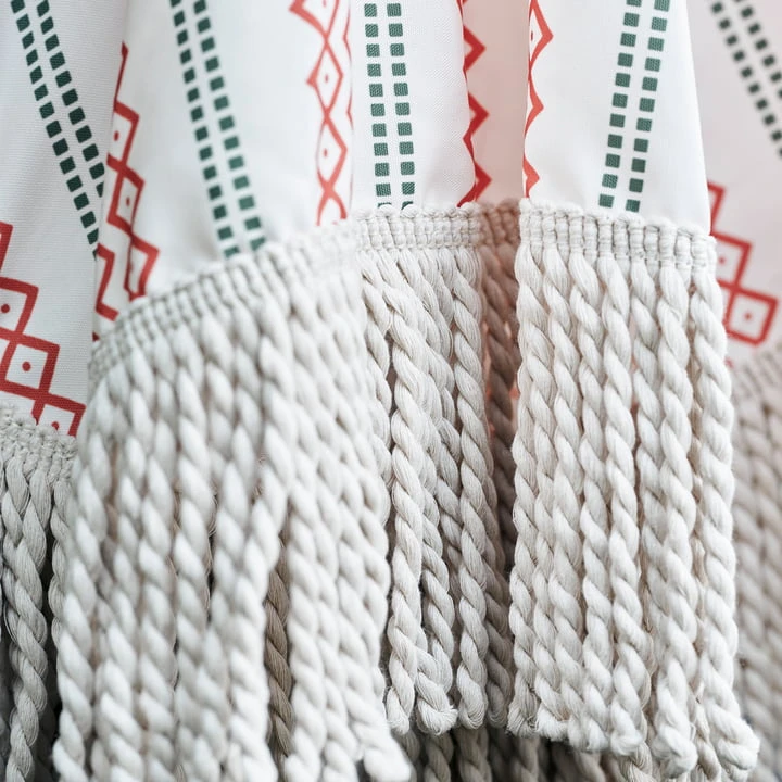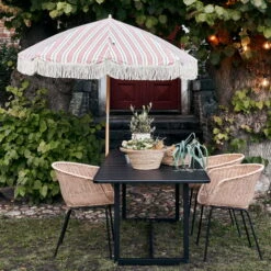 The Umbra Parasol helps create beautiful shady spots for warm summer days. The pleasant patterns as well as the thick, long fringes give the outdoor area a stylish look with a distinctive touch of vintage.