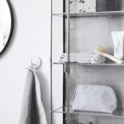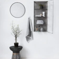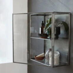 The House Doctor zinc wall cabinet is a practical and decorative small shelf for the wall. Made of stainless steel with a glass door, the wardrobe gives every wall a rough yet fine look.
