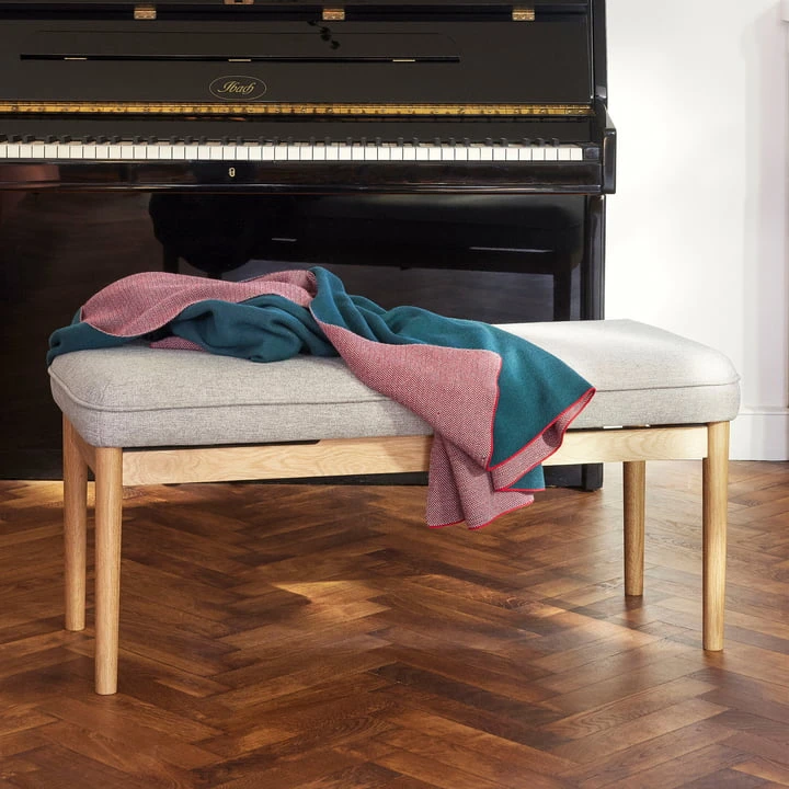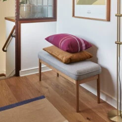 The bench is made of FSC® certified oak and finished with OEKO-TEX® certified polyester.