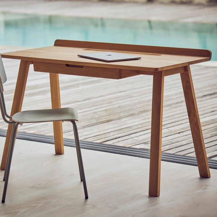 With the Nara desk from Jan Kurtz makes working a pleasure! The desk made of solid oak offers enough space for all necessary office utensils on its oiled surface. With its clear lines, its reduced design and its warm wood the Nara desk is a real eye-catcher! The desk also has a drawer where any documents can be stored.