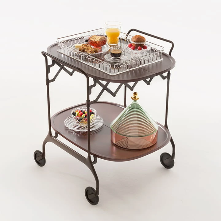 The Gastone serving trolley was designed by Antonio Citterio and Oliver Löw for the Kartell brand and impresses with its filigree appearance.