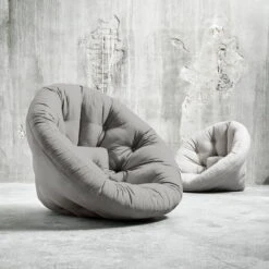 Nido von Karup Design is a futon in the shape of a semicircle, which can be turned into a comfortable armchair in just a few steps with the help of four Velcro fasteners. Both variants invite you to meditate, lazing, reading and sleeping.