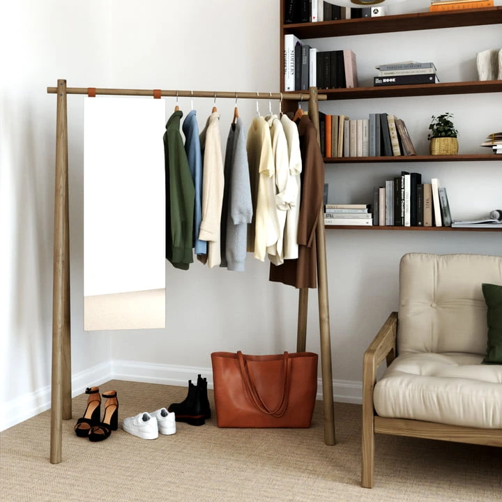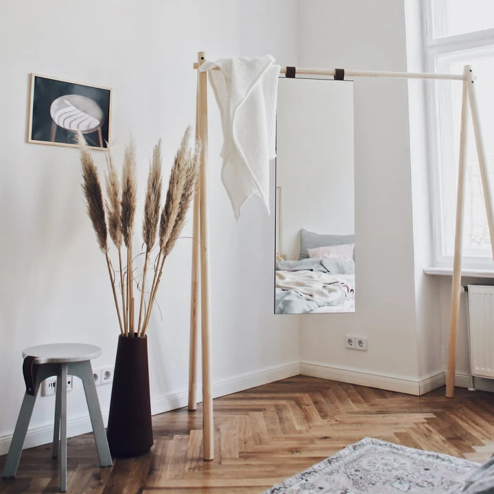 Placed in the bedroom, the wardrobe can stylishly showcase your favorite outfits, while arranged in the hallway it serves to hang jackets and coats. The wardrobe designed by Anders Mørk Hongi The wardrobe designed by Anders Mørk is available in different colors and optionally with a mirror, which is suspended from the clothes rail.