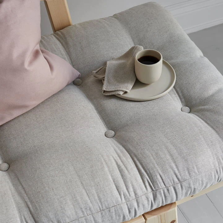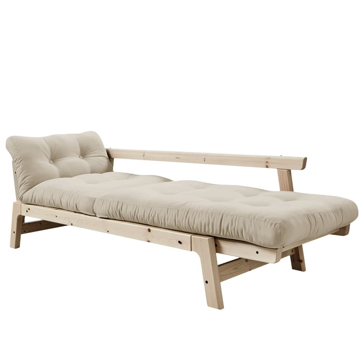 The Step Sofa by Karup Design was designed by Says Who and convinces with its compact and flexible design. As a sofa with both armrests in upright position fits Step also into smaller rooms and provides for cosiness in a timeless design. With one arm angled downwards, a seat is created that supports the back while you relax. When both arms are folded down, the Step from a sofa to a comfortable daybed or a practical sleeping place for overnight guests.