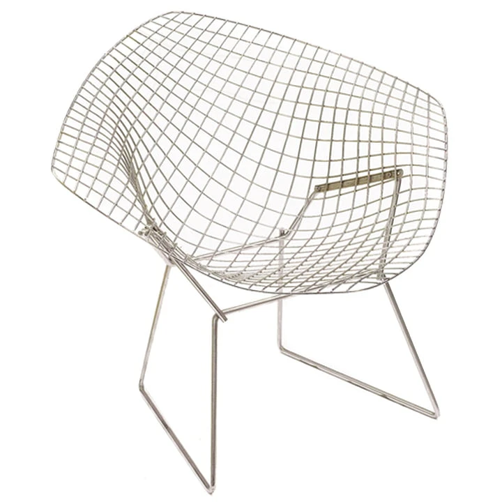 Whether chromed, satined chromed, or with plastic coating (Rilsan-protection coating), the wire mesh of the Harry Betoia designed and Knoll produced Diamond Chair served as inspiration for generations of growing young designers.