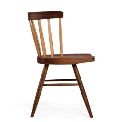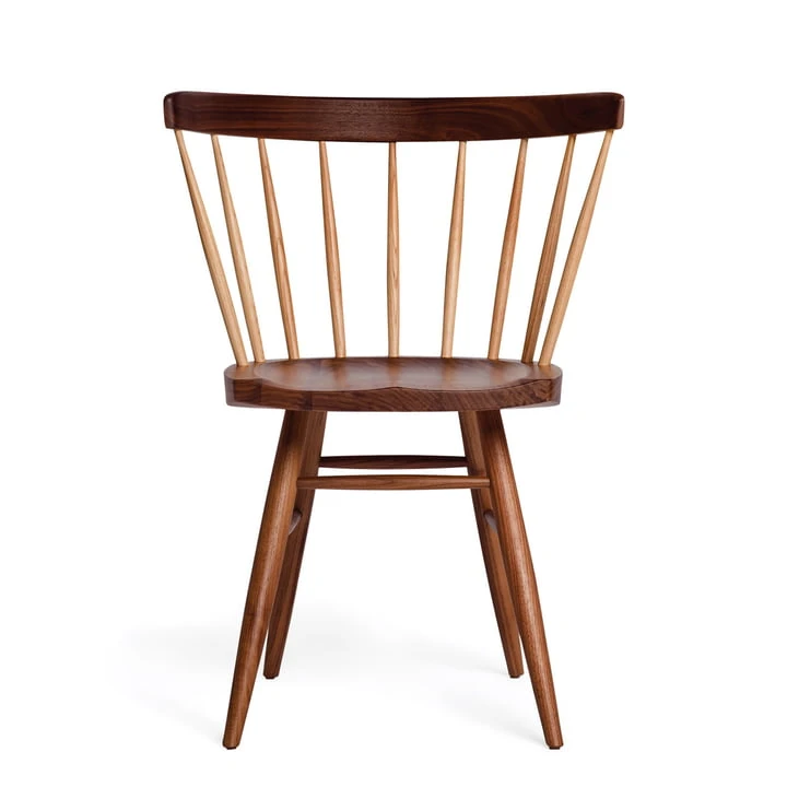 The 1946 by George Nakashima designed Straight Chair is a classic today. The chair by Knoll is a sensual image for artistic skills of American Japanese designers with its natural, matt glossy surfaces and vivid grain: Nakashima is considered a pioneer of American handicraft.