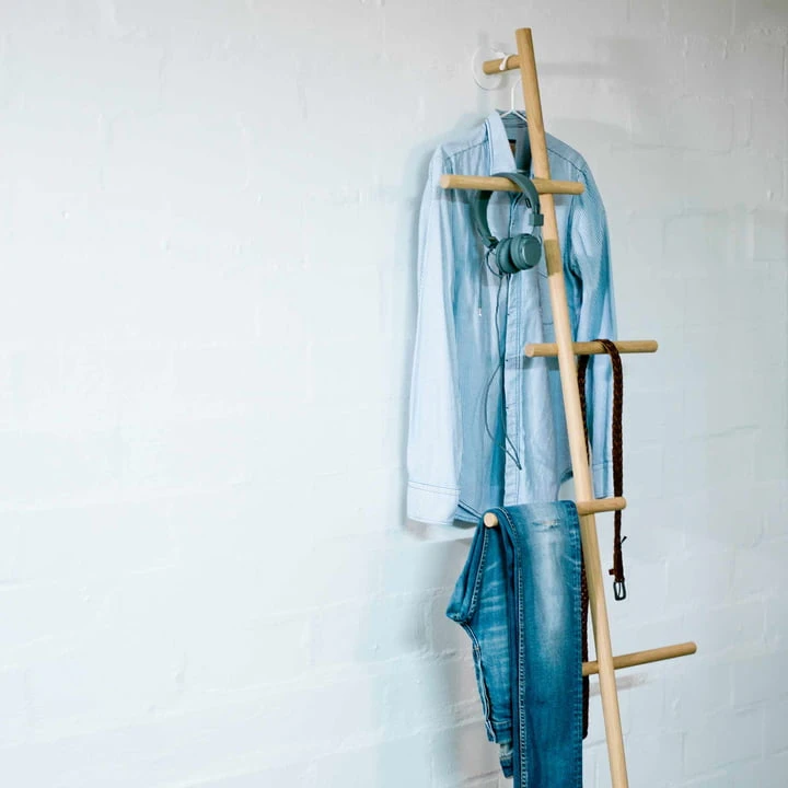 It is made Wendra of solid wood, which spreads a certain warmth and thus stylishly enhances every ambience. Due to its puristic design, the coat rack can be used in many ways and finds its place, for example, in the bathroom as a towel rack, in the bedroom as a mute servant or in the hallway as a classic coat rack.