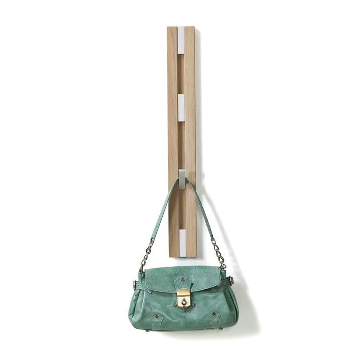 The horizontal Knax bar is a popular wardrobe in the entrance area for a long time. Now the vertical variant with 4 hooks by LoCa however is perfect for those who need to accommodate many coats, but unfortunately only have little space. Like the classic model, also this version has folding hooks, which in this case are attached on a wooden front panel. Thus, all clothes and accessories necessary in everyday life also allow to be hung up easily even on narrow walls.
