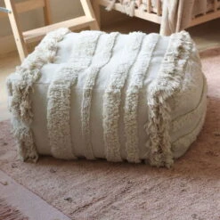 The Early Hours Pouf from the Spanish house Lorena Canals is with its boho look. The pouf can be wonderfully used as additional seating, as a footrest or even as a table. The versatile pouf is made of cotton and polyestyrene balls.
