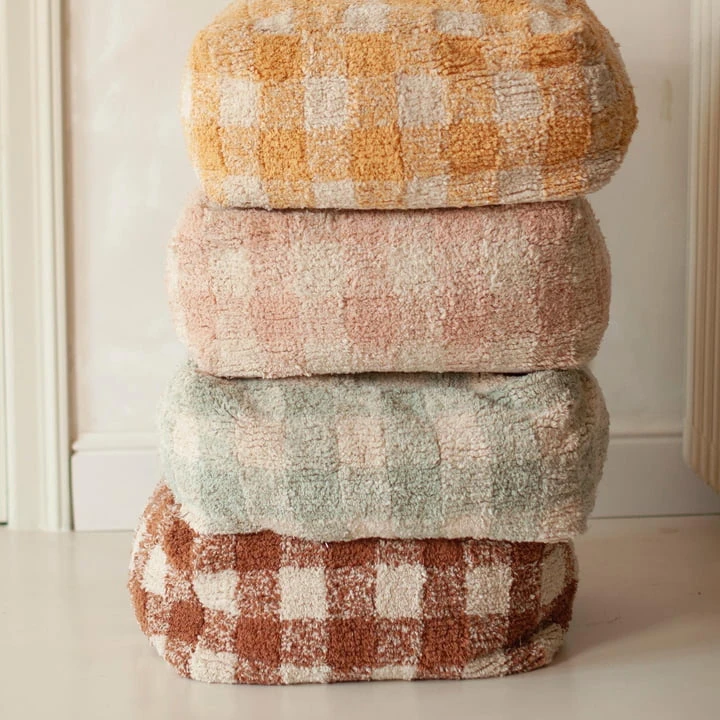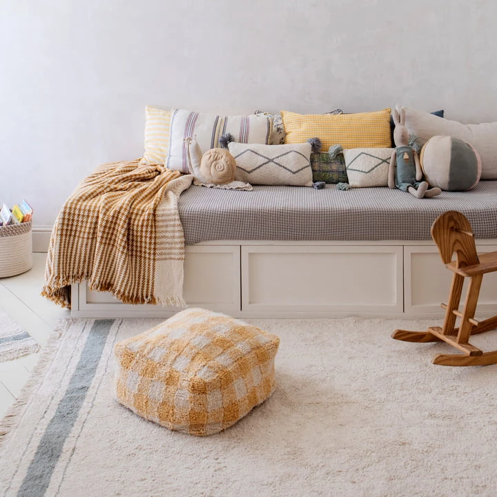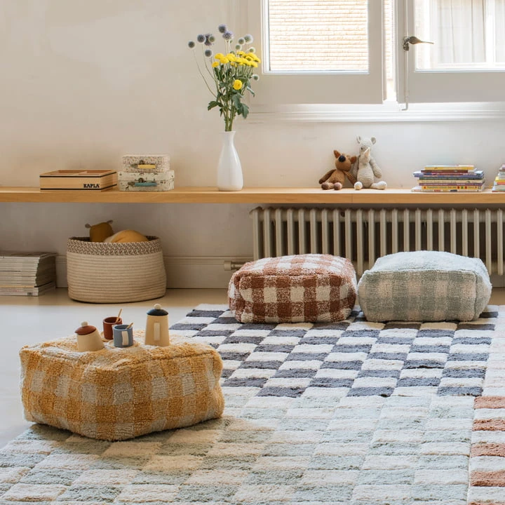 The Vichy Pouf from the house Lorena Canals captivates with its classic Vichy -check pattern. The great plush stool can be placed as needed – whether in the living room, children’s room or even at the dining table. The cover is made of cotton and filled with polystyrene beads. The pouf in vintage look is available in a variety of beautiful colors.