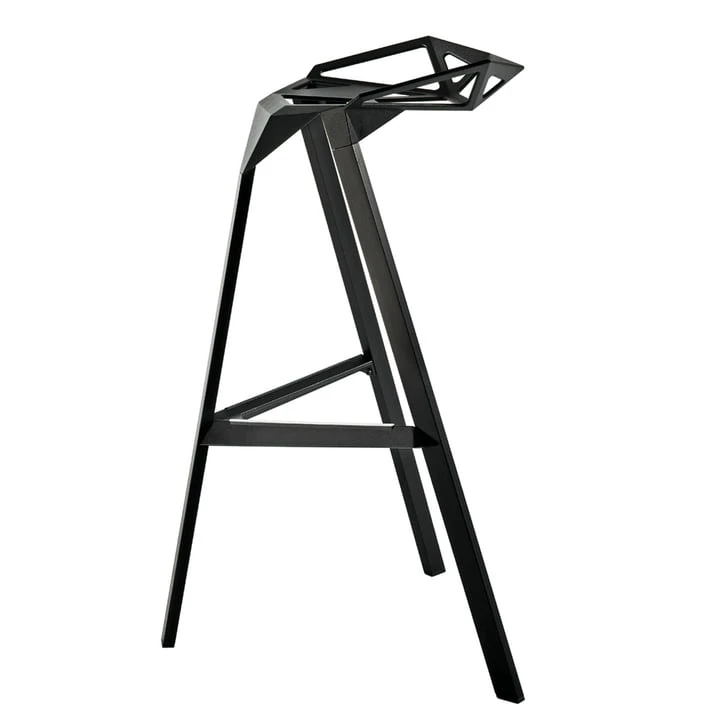 The stackable bar stool Stool One designed by Konstantin Grcic has been produced by the Italian manufacturer Magis since 2006. Due to its high-quality polyester coating, the bar stool can be used both indoors and outdoors. The seat is made of die-cast aluminum with a fluorinated titanium surface and a polyester paint finish. The legs are made of profiled aluminum, also polyester painted or color anodized.