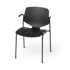 The Nova Sea armchair from Mater is a stylish and slim chair with armrests that is not only chic but also produced in an environmentally friendly way: it is made from recycled plastic waste from the world’s oceans, such as fishing nets. Its elegant silhouette fits into any ambience, whether at the dining table, in the living room or in the hallway, the office, or commercial areas such as waiting rooms, entrance areas or lobbies.