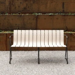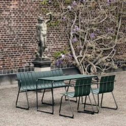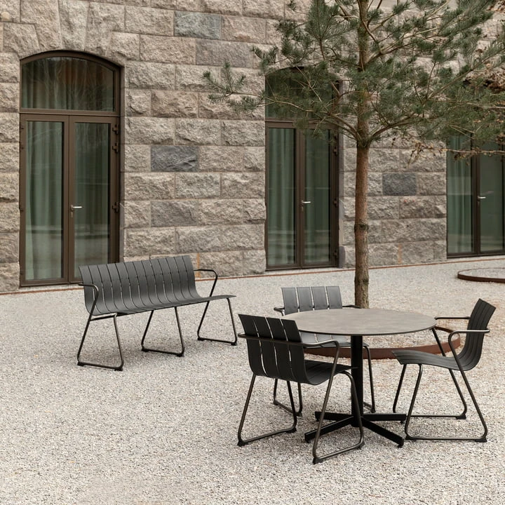 The Ocean Bench from Mater is part of a series of tables and chairs designed by Nanna Ditzel back in 1955. As a new edition, classic, Danish furniture is reinterpreted from recycled plastic from the sea. The bench is available in different lengths and consists of a steel frame with burnished finish and table tops made of recycled fishing nets and hard plastic. The bench is suitable for indoor as well as outdoor use and provides a modern and linear look indoors as well as outdoors.