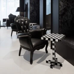 Side Table with Checkerboard Pattern