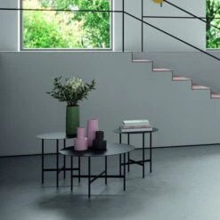 The BETA side table was designed by Werksdesign for Müller Möbelfabrikation. In two different sizes, it complements the sofa in the living room, the bed in the bedroom or a cozy corner in the hallway or entrance area. Due to the weatherproof metal it can BETA can also be used outdoors. Here it becomes a useful companion for the oasis of peace on the balcony or terrace. BETA fits through the clear form and the simple design in every home.