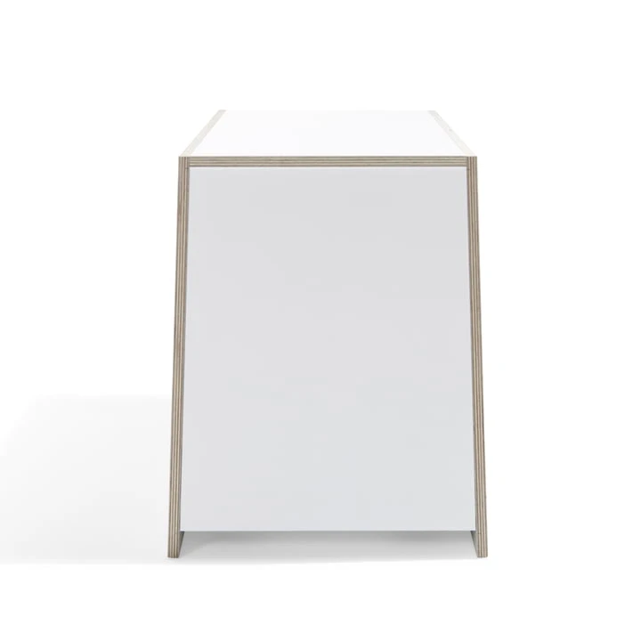 The boxes by Müller Möbel can be placed next to each other or on top of each other according to the personal demands of the user, with their compact size of 80 x 41 x 35 cm. If the single modules are stacked, they stand safely: Since the shape becomes slightly slimmer to the top. This is how the modules do perfectly mesh – without screws, dowels or other fixation hardware.