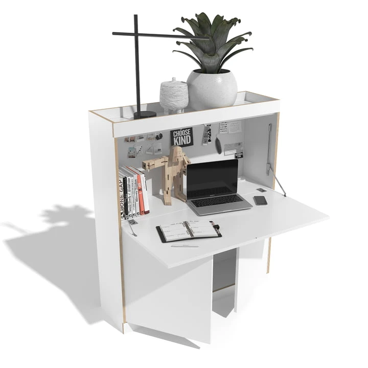 The Flai Home Office Secretary from Müller Small Living is available in different sizes and color finishes. It is made of birch wood in Finland.
