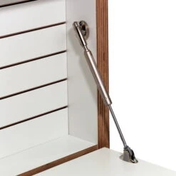 The secretary has a large, stable worktop measuring 420×710 mm. The high-quality flap holders guarantee slow, damped lowering of the worktop. The inner functional area of the furniture has a depth of 85 mm. Behind a removable panel there is a non-glare workplace lighting with an integrated socket.