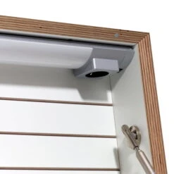 Power is supplied via a 2-meter textile cable with plug. Also included is a 3-piece organizer set (iPad holder, letter rack, tray) made of powder-coated metal. These elements can be flexibly hung on the back wall. The secretary has an additional door on both sides. Here is additional storage space available. The 3 compartments on each side offer space for an 8 cm wide standard folder, a 17″ laptop, CD s etc.