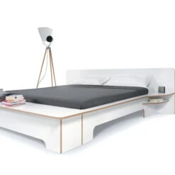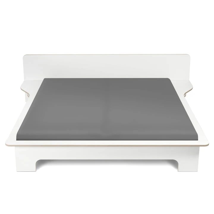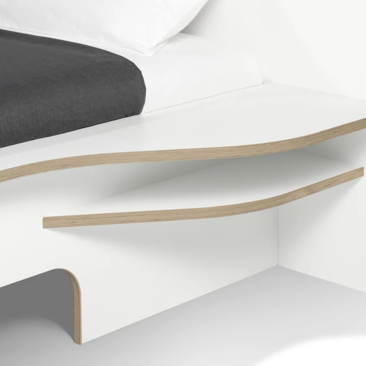 With its oiled and soft border, the Finnish plywood is available in black and white. The bed consists of an 18 mm strong birch multiplex board with a melamine resin coating and a white covering or a black translucent covering. The board is naturally oiled.