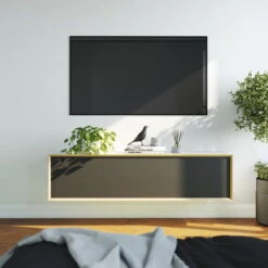 The Vertiko HiFi Sideboard of the German label Müller Small Living can be used in many ways. Whether as a wall shelf, sideboard or as a HiFi element. Likewise, you can freely decide how to use the storage space – horizontally or vertically / standing or hanging. The doors are equipped without handles, but can be opened easily thanks to the push-to-open function. The shelves inside the sideboard can be moved as desired. The HiFi sideboard offers space for receivers, consoles and DVD players. The dirt-repellent and sound-permeable acoustic fabric covers the openings of the front and provides sufficient ventilation. The cable openings of the back or top side ensure an optimal power supply.