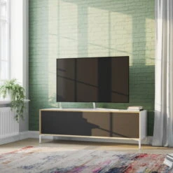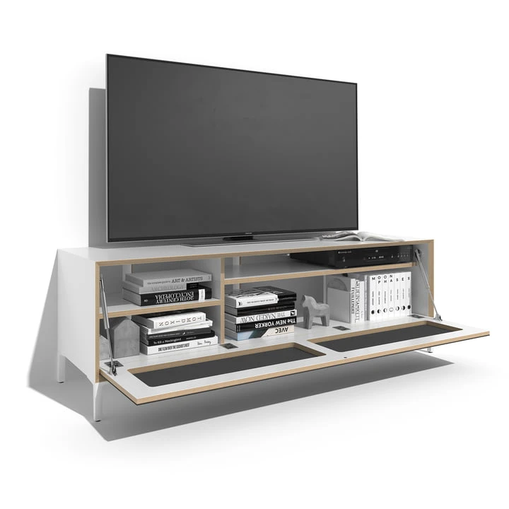 The Vertiko HiFi Sideboard is made of coated birch wood and is available in different colors.