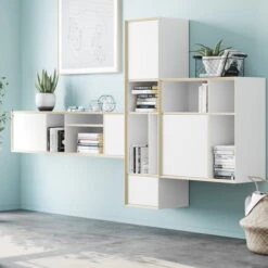 The Vertiko Vertical Shelf of the German manufacturer Müller Small Living can be used flexibly according to your wishes. Horizontally or vertically mounted – the modular piece of furniture by the designer German Sascha Sartory can be either mounted on the wall or placed on the floor. The push-to-open function allows the doors to be minimalist without handles. The shelves of the shelf can be moved at will, so it can be used as a secretary or minibar.