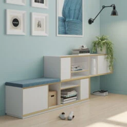 Minimalist narrow sideboard with sliding shelves.