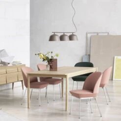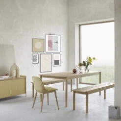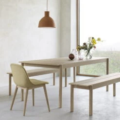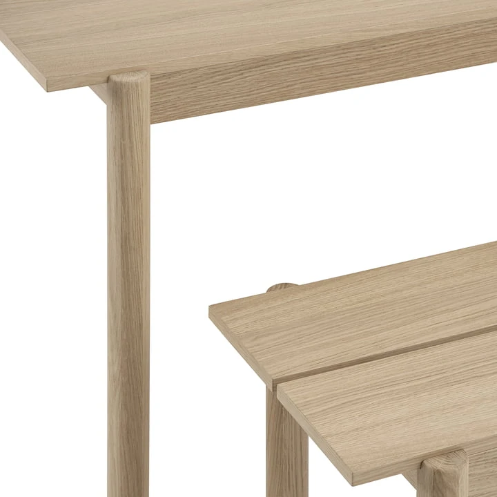 The Linear Wood dining table from Muuto is characterised by its simple, elegant design. With its reduced form and Scandinavian charm, it brings calm to every dining area. While the table top has defined edges, the legs are ground round. The combination of both elements ensures a harmonious overall appearance that blends in perfectly with any ambience. The designer Thomas Bentzen, who has already worked for numerous well-known manufacturers, is responsible for the design of the table.