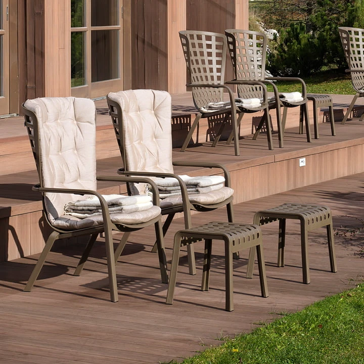 The Folio Outdoor Armchair from Nardi is an outdoor armchair made of perforated fiberglass-reinforced plastic with a check pattern and matte finish. The armchair presents a comfortable backrest that seamlessly transitions into the lowered, generous seat. A unique and elegant structural embrace that can be adjusted in two positions, making it perfect for long hours on the patio or in the garden.