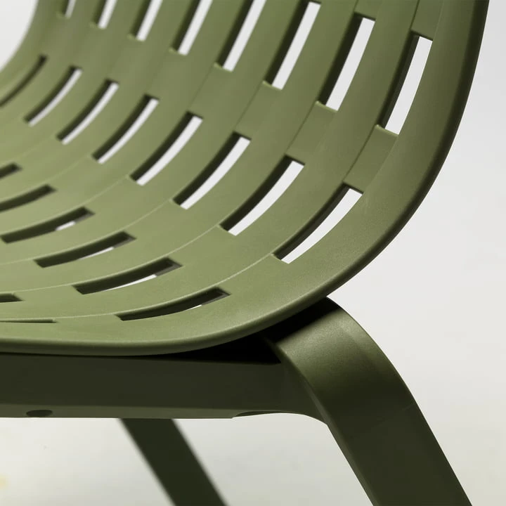 Folio Is made of UV-resistant, recyclable polypropylene, which does not splinter thanks to its full coloration. It is also equipped with non-slip foot caps.