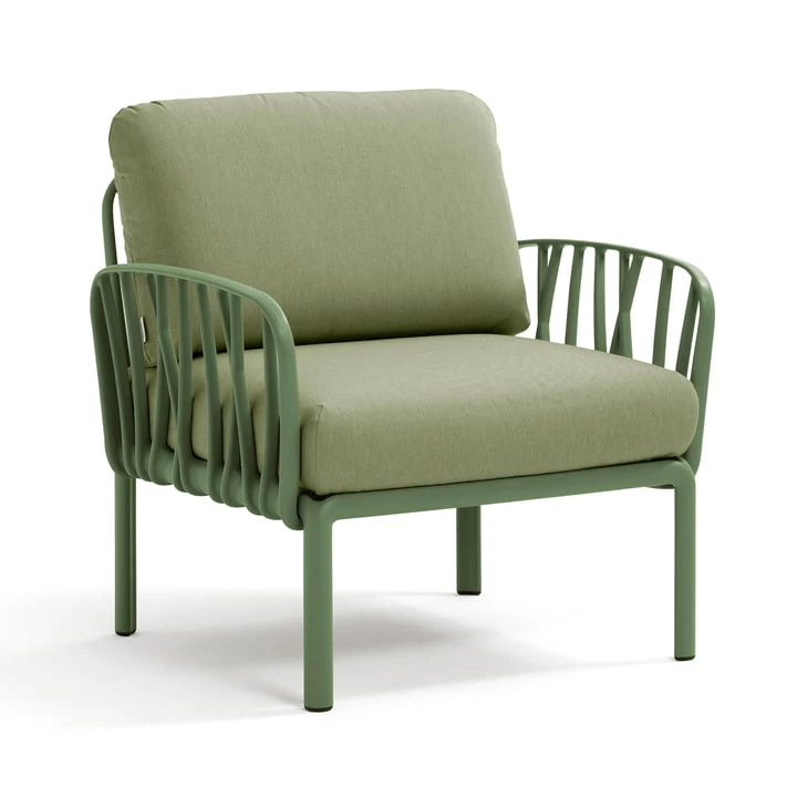 The armchair can be combined Komodo Poltrona Armchair with the matching modular sofa , the pouf and the garden table from the Komodo series. Thus, a cozy lounge area can be created in the home outdoor area. The design of the armchair, especially the backrests, are reminiscent of tree branches, creating a natural look.
