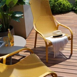 Net Lounge gives a feeling of well-being just by looking at it. A recyclable outdoor chair made of fiberglass-reinforced polypropylene with a generous and deep seat, enveloping shape and a curved profile reminiscent of a wave.