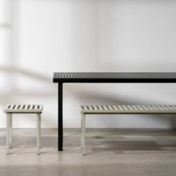 Each item in the series has an individual design. Through the material, color and proportions of aluminum extrusion unify the entire collection. The basis of the ’19 Outdoor’ series is the design project ’19 Chairs’ – 19 chairs were made in 19 days, delivered to 19 locations, reworked by 19 creatives and this was done during the COVID-19 phase. The purpose was to design a response in favor of Age UK & Resourcing Racial Justice, regarding the damage of COVID-19 restrictions within the artist scene.
