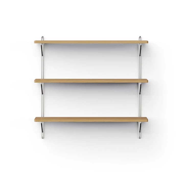 The Inline wall shelf from NINE forms a perfect combination of functionality and natural beauty, transforming the wall into a stylish and practical highlight. The wall shelf is equipped with sturdy oak shelves, which are known for their durability and stability. The fine oak wood with its characteristic grains gives each shelf a unique look and adds a rustic touch of warmth and coziness to any room.