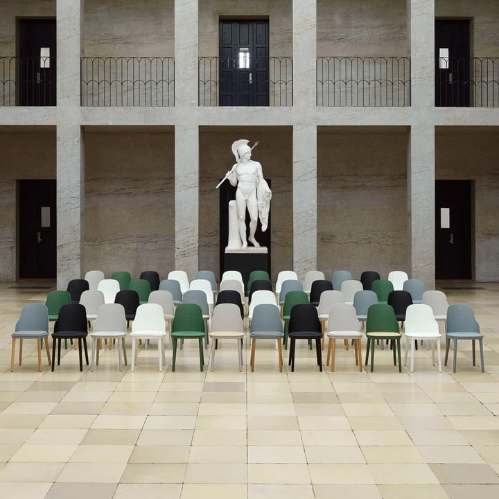 Thanks to the component principle, in which the chair is divided into individual components, different variations of the Allez chair are possible without any problems. Allez is therefore also available in polypropylene with upholstery or oak with upholstery.