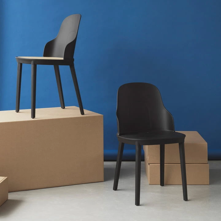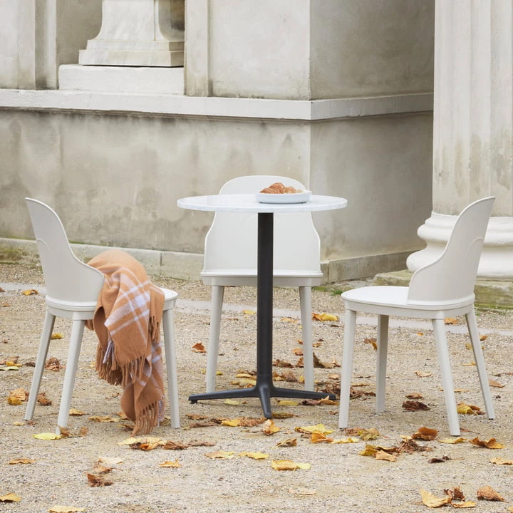Inspired by French metropolises and the bistro culture, the designer Simon Legald together with Normann Copenhagen created the Allez chair. A classic café chair, whose demands on design, functionality and reusability have been transformed into modern times. The resulting chair has a light, airy feel and the design is unmistakable. The organic shapes of the backrest imitate the shape of the body and run along the bottom of the seat. Together with an additional reinforcement in the back section, this ensures optimum strength and seating comfort. The Allez chair is suitable for the home dining room, a café or restaurant, but also for high-traffic locations such as an educational institution, clubs or airport terminal.